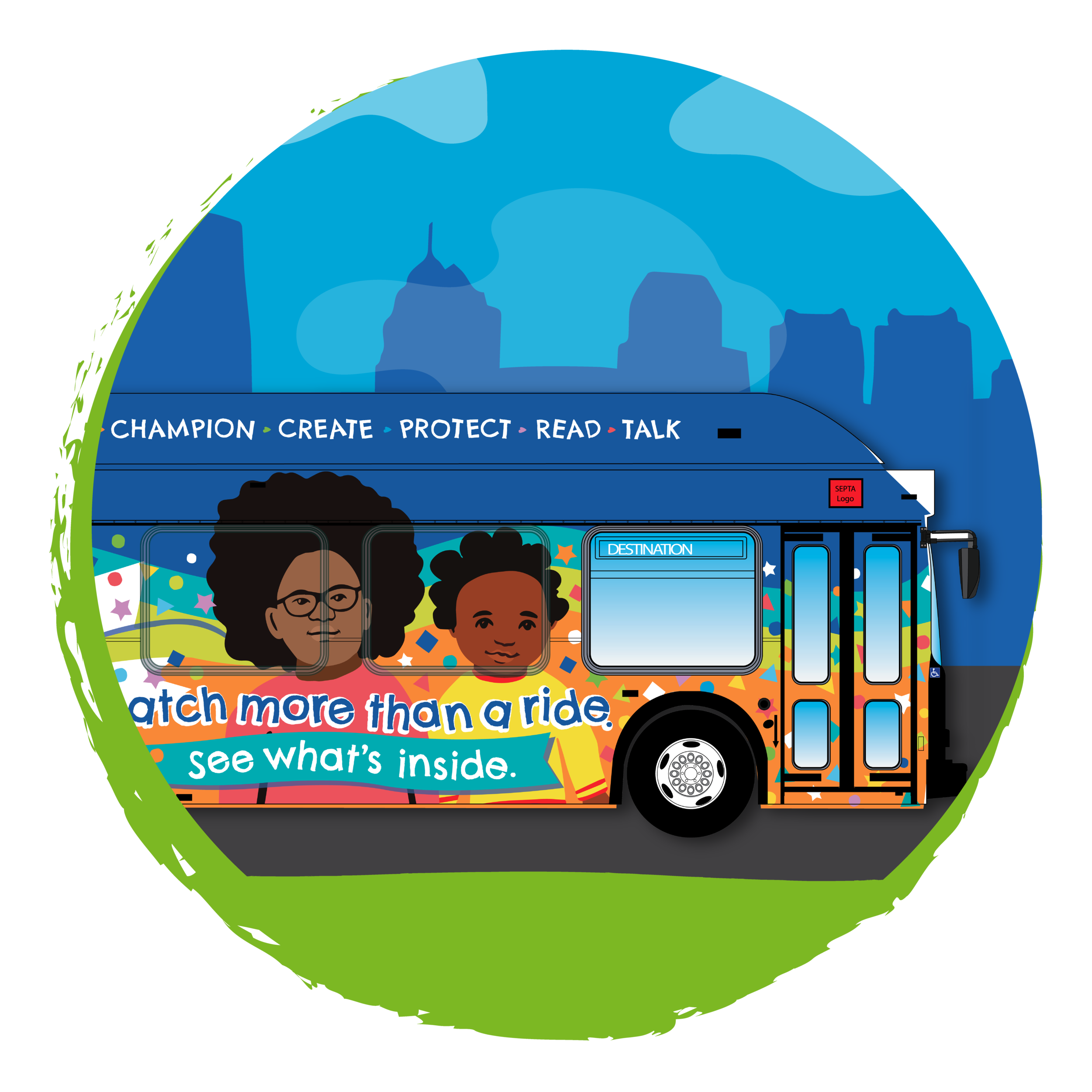 Featuring large, vibrant artwork and interactive cues throughout Philly’s public transit system–like riddles, tongue twisters, rhymes and sign language–COME ABOARD THE READING PROMISE was designed to spark the types of adult-child conversations that research shows grows strong readers.